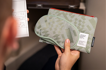 Die neuen Amenity Kits beinhalten eine im selben Design gestaltete Schlafmaske, eine Zahnbürste, Zahnpasta-Tabletten, Ohrstöpsel und Socken, die alle in Papier verpackt werden. Eine Banderole rund um das Amenity Kit gibt Hintergrundinformationen über das MAK sowie den jeweiligen Künstler.
