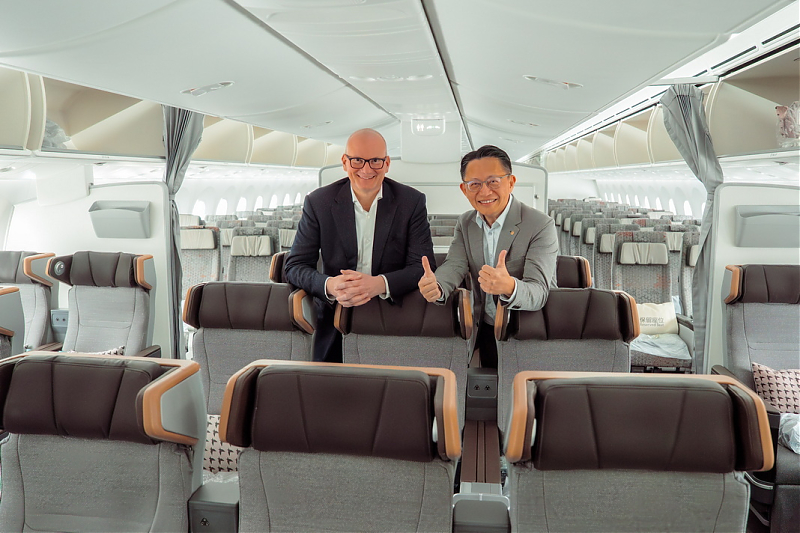 |  Julian Jäger und Edward Ho in der neuen Premium Economy Class der Boeing 787-9 (c) EVA Air